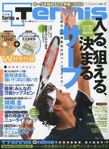 T.T(ティー・ティー)復刊 DVDなかなか参考になります 昨年の12月以降休刊していたT.T。休刊ということでしたが、やっと復刊した第1号。さっそく購入しました。以前のようにレッスンDVDも付いていて、今回はテニスハンカチも付いているのでなかなかお買い得でした。今回のサーブレッスンはかつての名プレイヤー辻野隆三氏のレッスン。なかなか面白い内容でした。
